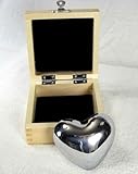 , Gorgeous palm sized, chrome plated, metal heart has a beautiful chime inside. Comforting to hold and to hear. Presented in a keepsake felt lined wooden box. Imaginative children can pretend that this melodic sound is what calls their very own fairy friend home. Have it engraved at a jeweler with a special message for the one you love. (Read More)