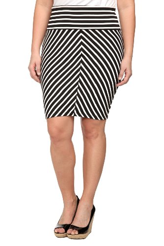 Torrid Plus Size, Black and white mitered stripes slim and flatter the sleek silhouette of this chic pencil skirt. Features a long waistband.